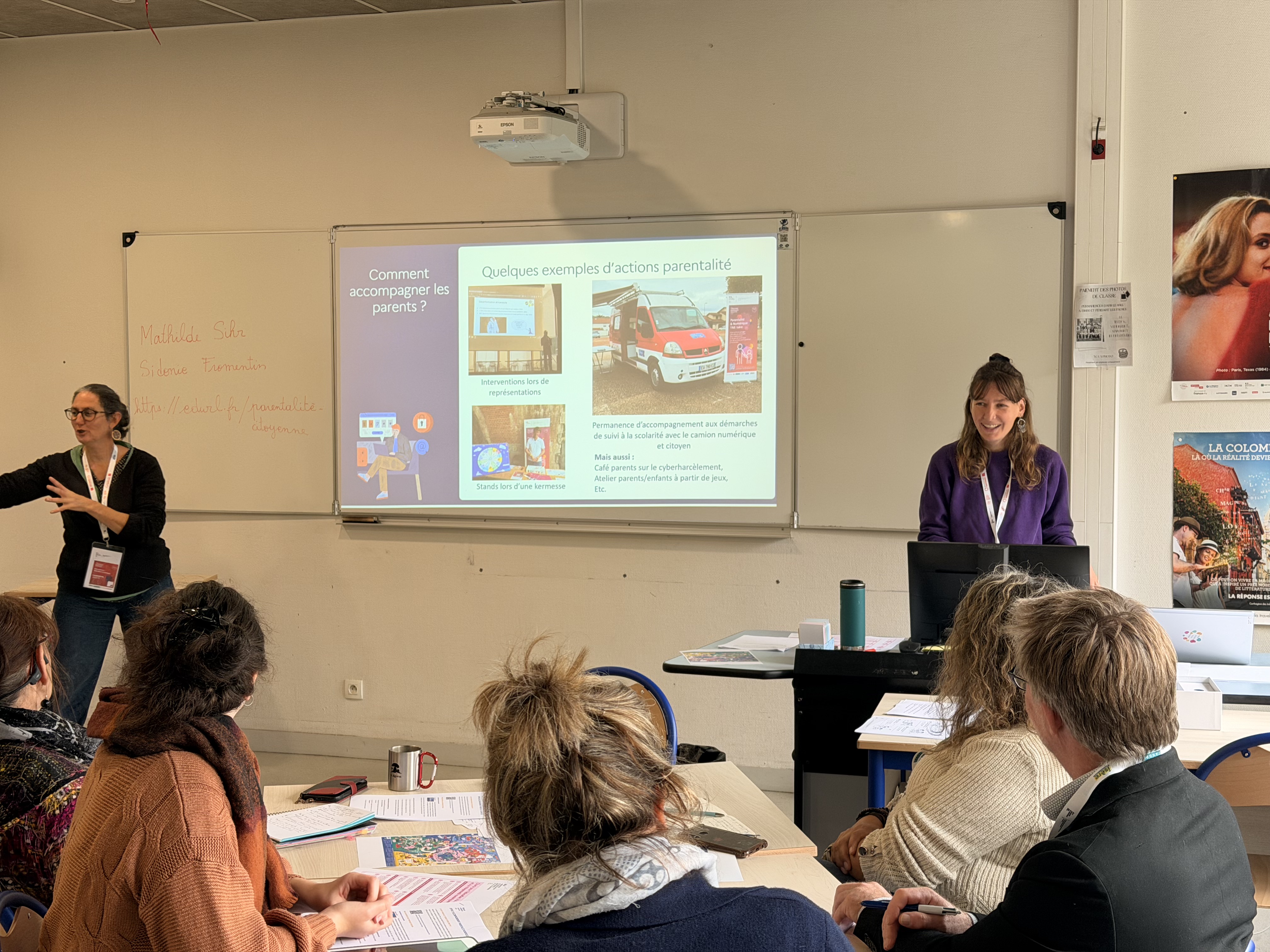 Après une courte pause, les participants ont rejoint l’un des quatre ateliers proposés : compétences psychosociales et numérique, EMI et cyberviolences, accompagner les parents à la citoyenneté numérique et bien-être numérique. Ces temps de travail ont permis de partager des pratiques transférables et d’identifier des ressources mobilisables dans les établissements.