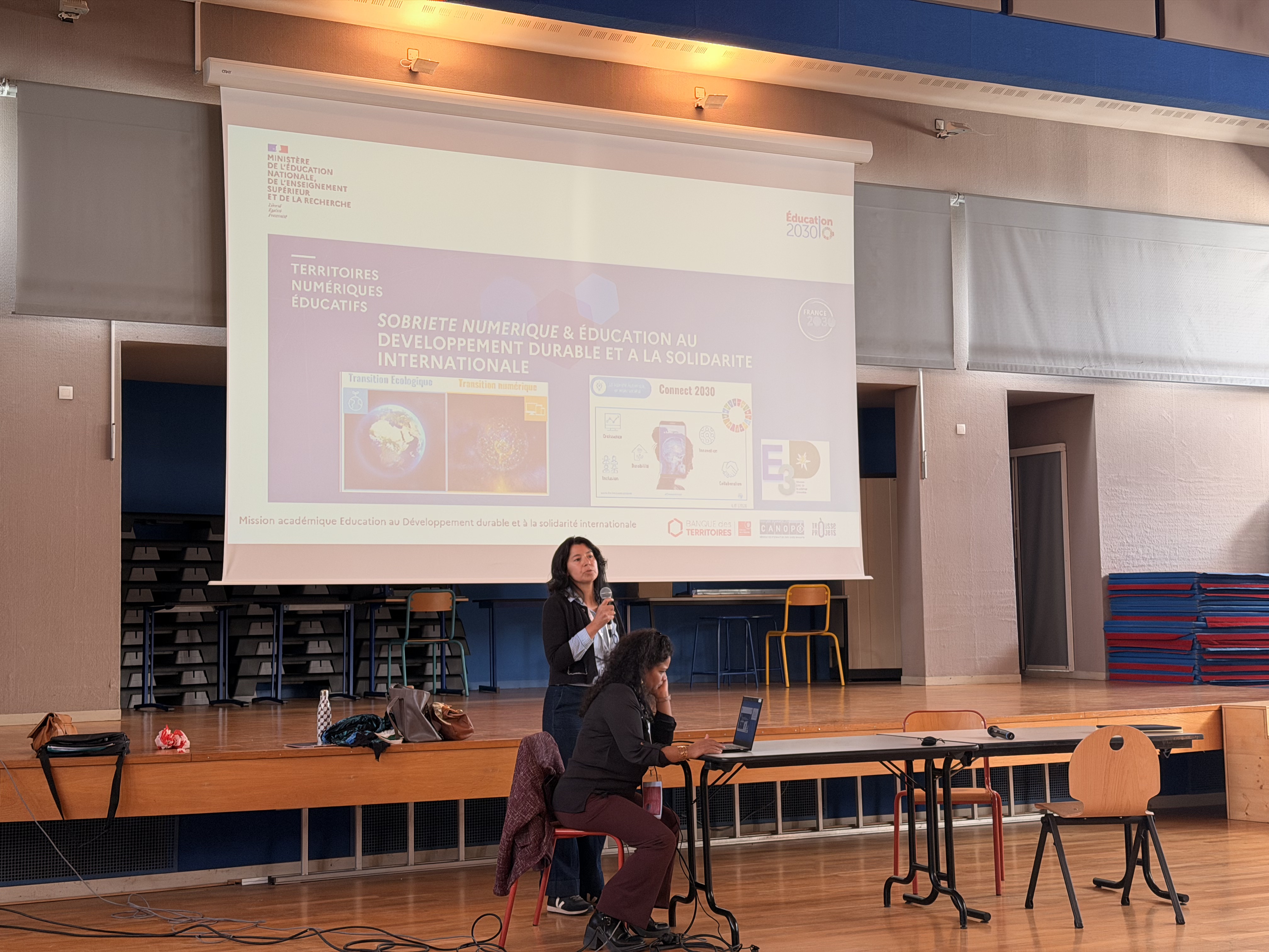 Animée par Geneviève Baret, Christophe Driver et Vanitha Dovis, cette séquence a proposé une définition opérationnelle de la sobriété numérique : adopter des usages raisonnés, conscients de leurs impacts, en développant des gestes écoresponsables et une posture de frugalité. Des données de contexte et des pistes pédagogiques ont été présentées, avec des exemples de projets transférables en établissement et des ressources de formation pour les équipes.