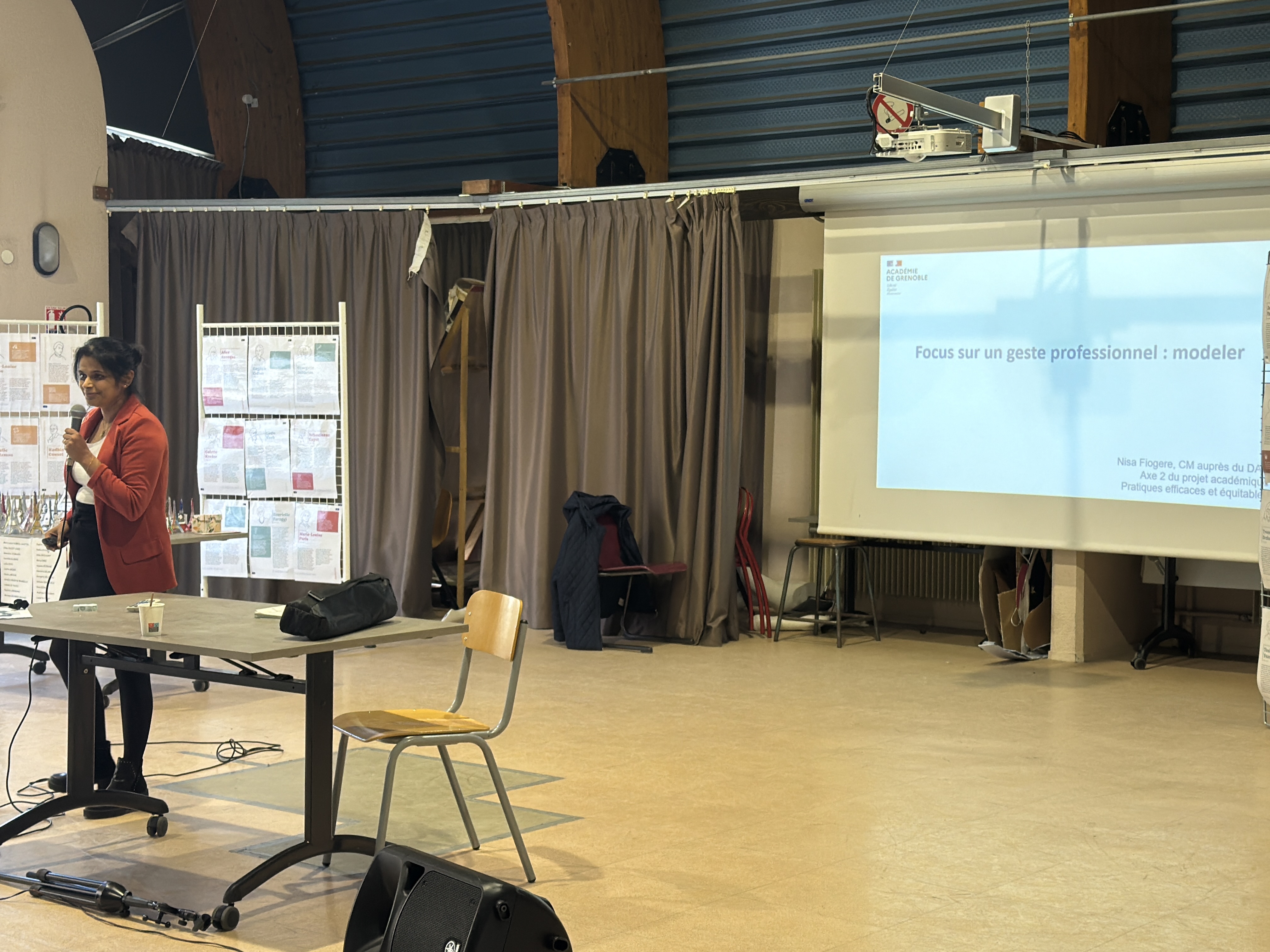 Nisa Fiogere, chargée de mission académique pratiques effaces et équitables, a consacré un temps fort de 45 minutes au modelage, un geste professionnel qui irrigue l'ensemble des pratiques enseignantes. Son intervention a permis de montrer comment encapsuler le modelage en s'appuyant sur la didactique et comment scénariser des capsules de modelage, notamment grâce à l'intelligence artificielle et au travail sur les prompts.
