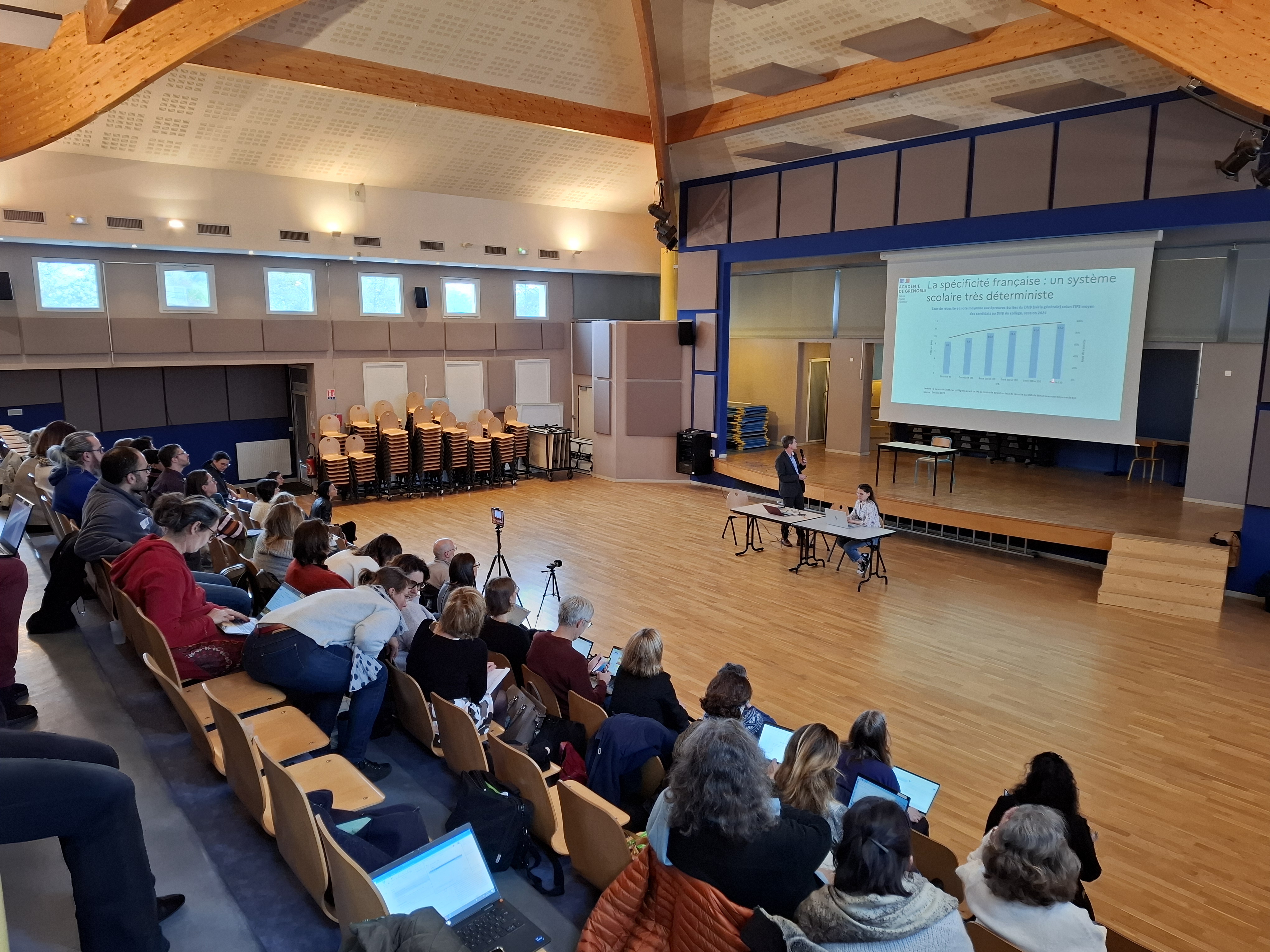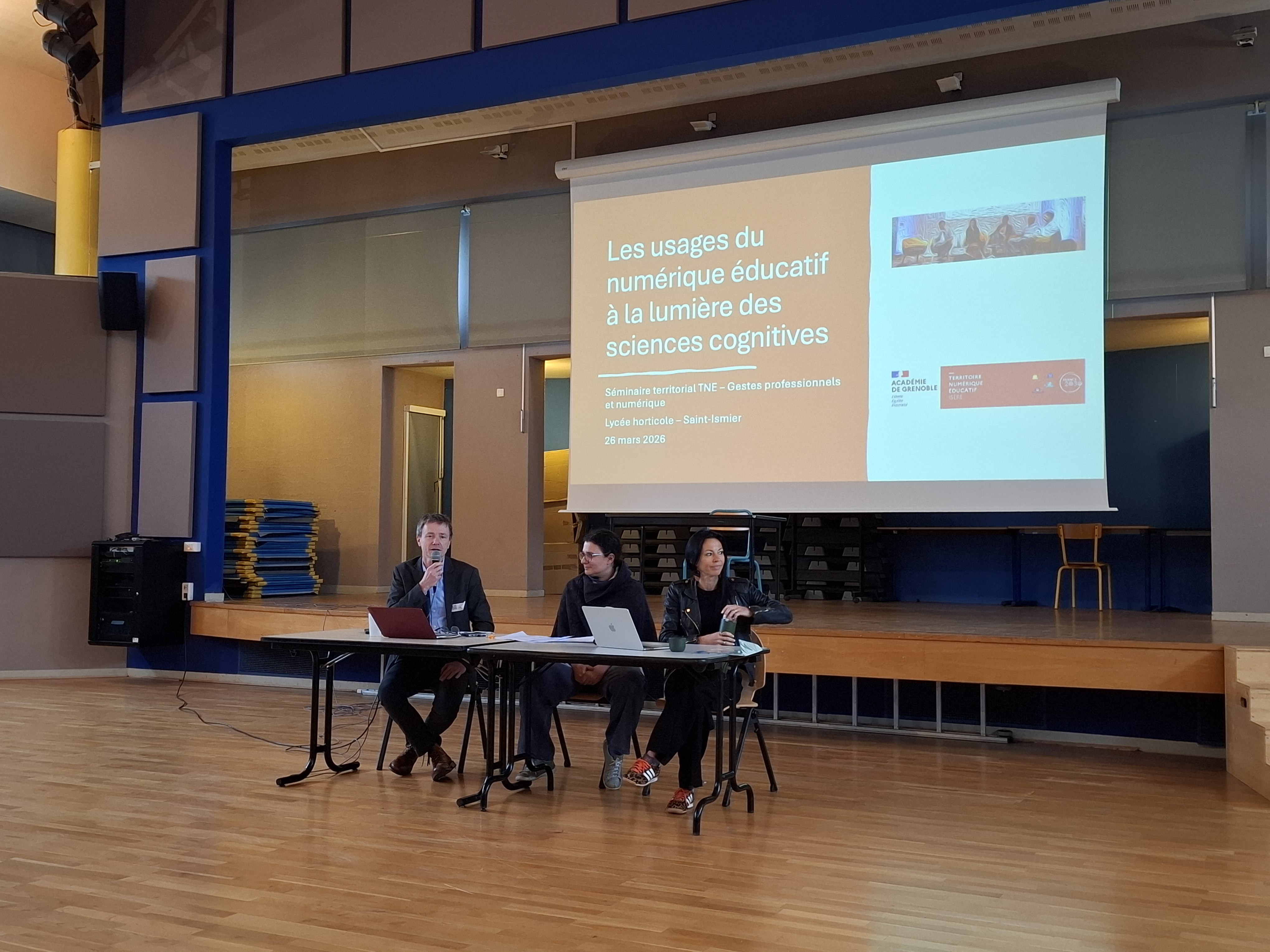 Les 19 et 26 mars 2026, les acteurs du Territoire Numérique Éducatif de l'Isère se sont réunis autour d'une même journée de séminaire, proposée en deux sessions pour couvrir l'ensemble du département : le 19 mars pour l'Isère nord (collège Condorcet, Tullins) et le 26 mars pour l'Isère sud (lycée horticole Saint-Ismier). La question au cœur de ces journées : comment les outils numériques, articulés à des gestes professionnels enseignants efficaces et équitables, peuvent-ils favoriser et soutenir les apprentissages de tous les élèves, du premier au second degré ? Entre conférences, apports scientifiques et ateliers pratiques, ce séminaire a permis de tisser des liens concrets entre recherche, pratiques pédagogiques et usages du numérique.