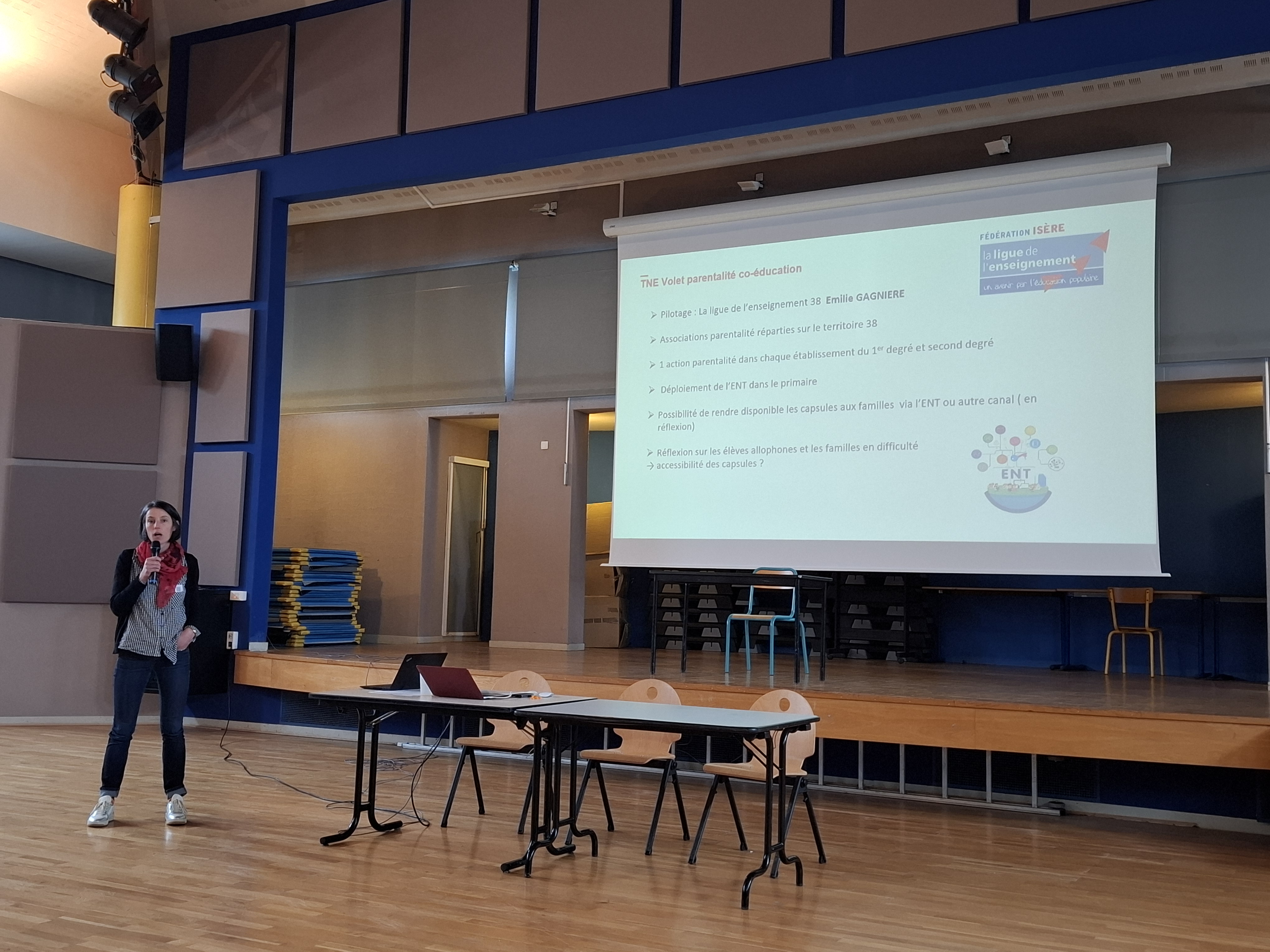 Les bénéfices sont multiples : diminution de la charge cognitive des enseignants, utilisation des capsules selon différentes modalités (en classe et hors classe), et lien direct avec le volet parentalité du TNE, présenté par Émilie Gagnière de la Ligue 38, pour accompagner les familles dans le suivi des apprentissages.