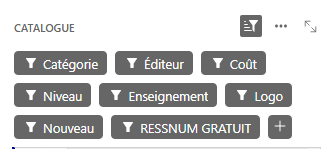 Le catalogue intègre un système de filtres permettant de cibler finement les ressources, en fonction des besoins :