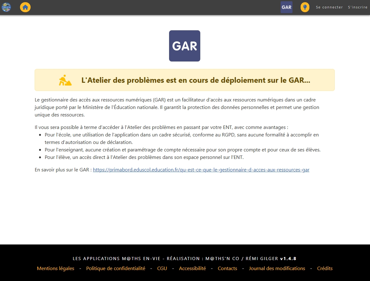 Les apps M@ths en-vie sont déjà accessibles en ligne via appenvie.fr, mais elles sont aussi conçues pour s’articuler avec les environnements numériques de travail. Une page dédiée présente notamment l’accès via le Gestionnaire d’Accès aux Ressources (GAR), avec, pour les élèves, un accès direct à l’Atelier des problèmes depuis leur ENT.