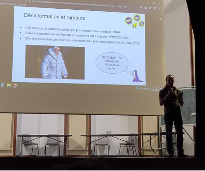 Chaque saynète était suivie d’un temps d’échange avec les familles pour présenter des pistes de réponses concrètes : vérifier les sources, tester des serious games en famille, développer l’esprit critique…